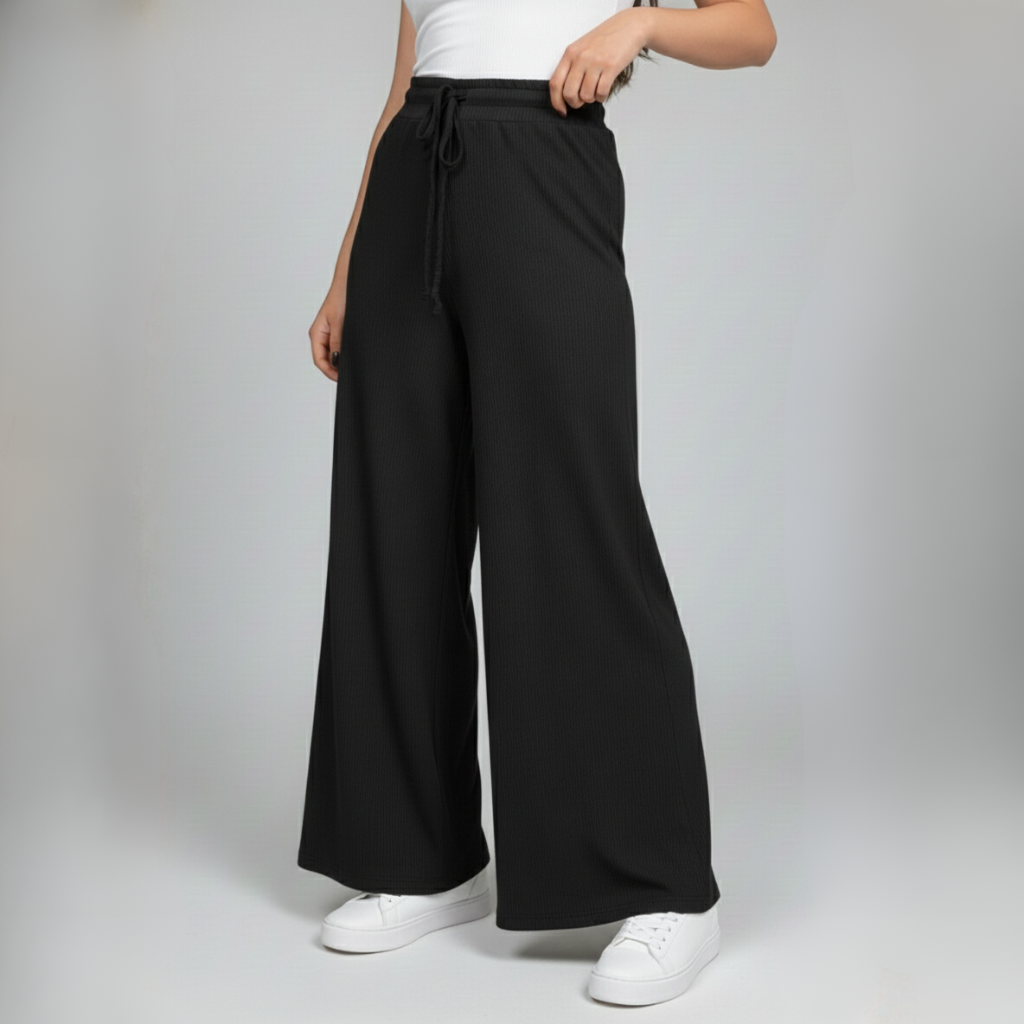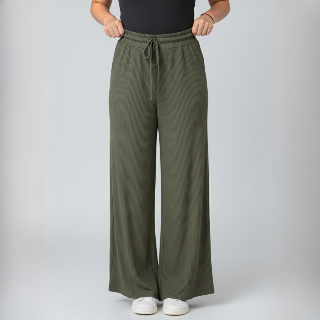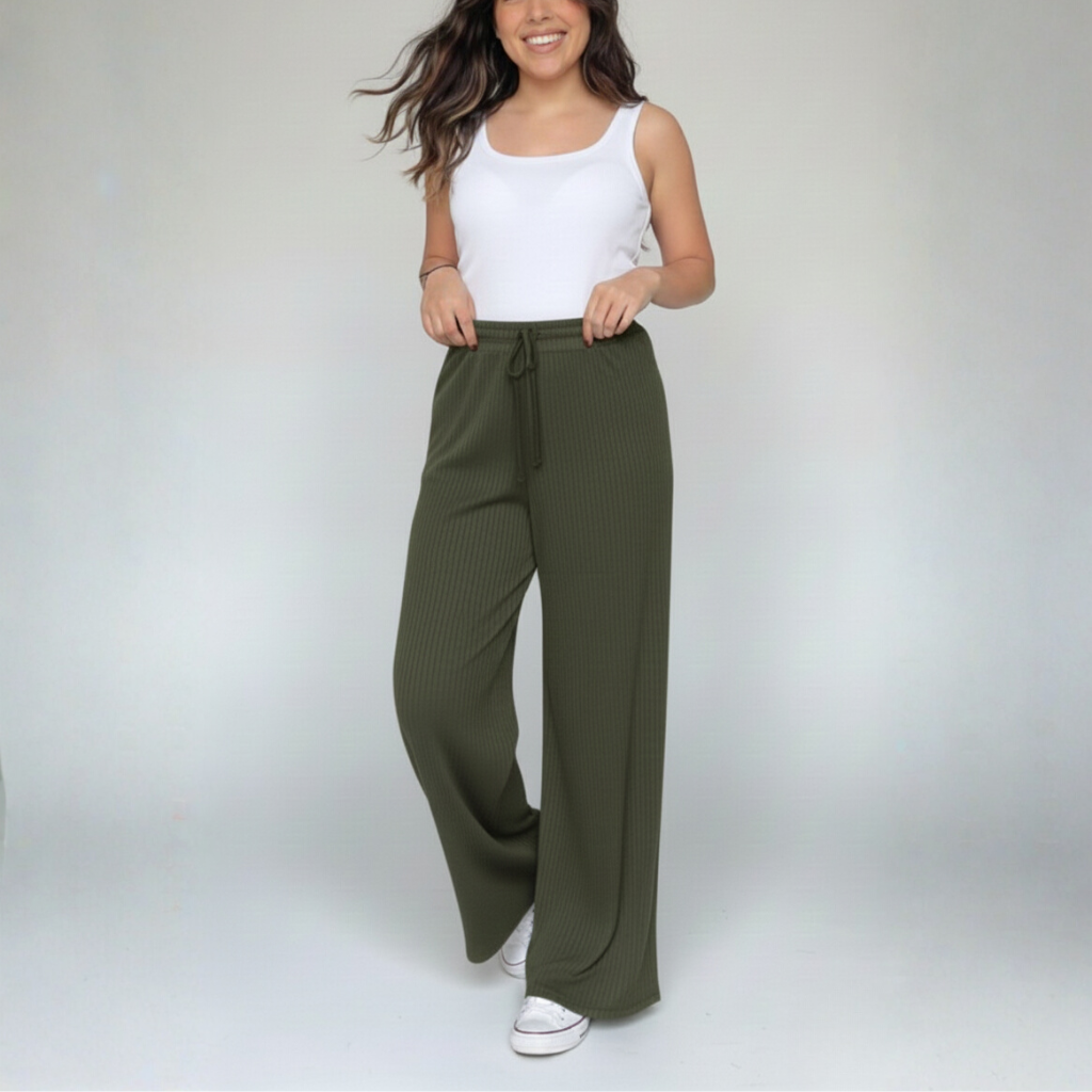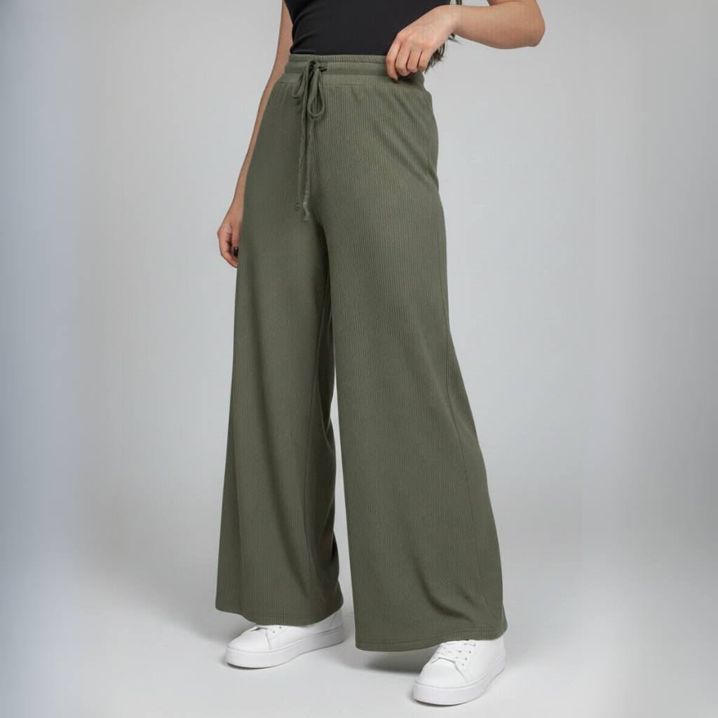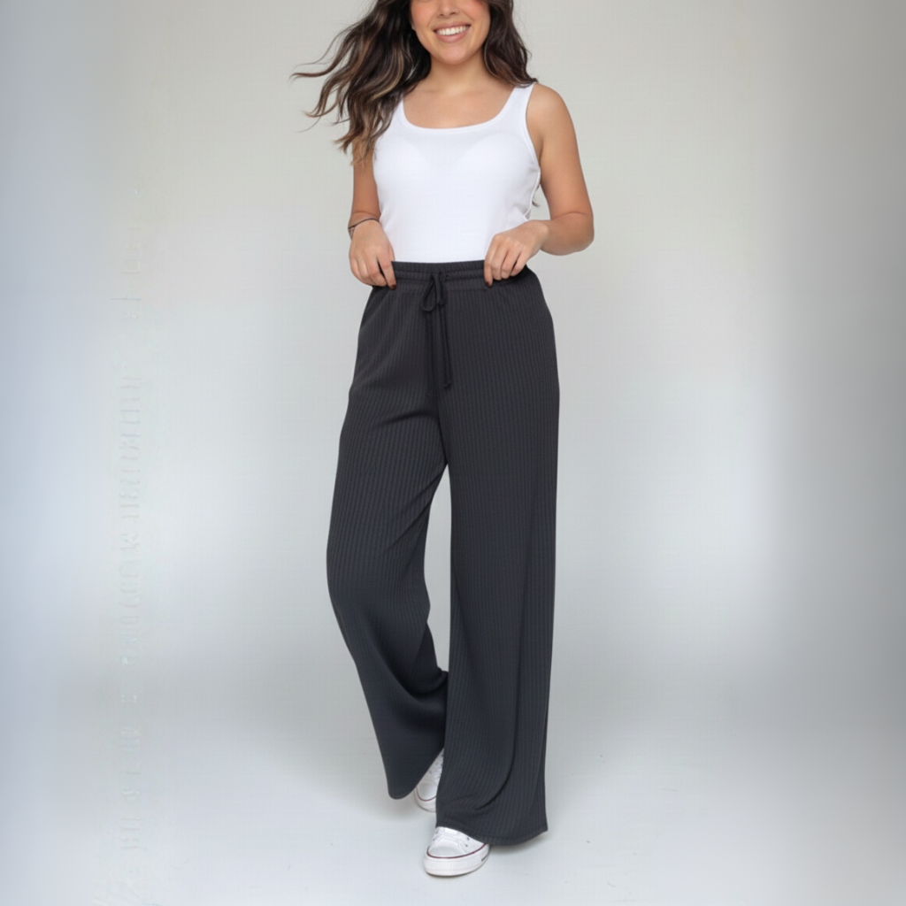 Palazo Rib suave, ligero y ultra cómodo, ideal para los días de calor y para quienes buscan una prenda fresca sin dejar de verse bien. Su silueta amplia permite moverte con total libertad, perfecta para el verano, para viajes o para armar looks relajados y elegantes.